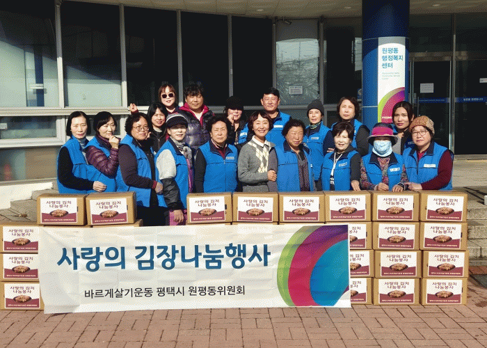 À§¿øÈ¸´Â ¸Å³â ±èÀåö¸¶´Ù ȸ¿øµéÀÌ ÇÑÀÚ¸®¿¡ ¸ð¿© Á¤¼º²¯ ±èÄ¡¸¦ ´ã±×°í, À̸¦ µµ¿òÀÌ ÇÊ¿äÇÑ °¡Á¤¿¡ Àü´ÞÇØ Áö¿ª»çȸÀÇ ³ª´® ¹®È¸¦ ½ÇõÇϰí ÀÖ´Ù. ¿ÃÇØµµ ȸ¿ø 16¸íÀÌ Âü¿©ÇßÀ¸¸ç, ¼Õ¼ö ´ã±Ù ±èÄ¡¸¦ °ü³» Ãë¾à°èÃþ 50°¡±¸¿¡ Àü´ÞÇØ Áö¿ª Áֹε鿡°Ô µû¶æÇÑ ¿Â±â¸¦ ÀüÇß´Ù.
