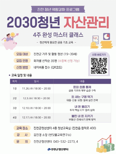 À̹ø ±³À°Àº ÃÑ 4ȸ °úÁ¤À¸·Î ±¸¼ºµÆÀ¸¸ç 1°¿¡¼´Â ±ÝÀ¶ ±âÃÊ °³³ä°ú À繫 ½À°üÀ» ÅëÇØ µ·ÀÇ È帧À» ÅëÁ¦ÇÏ´Â ¹æ¹ýÀ» ¹è¿î´Ù.
