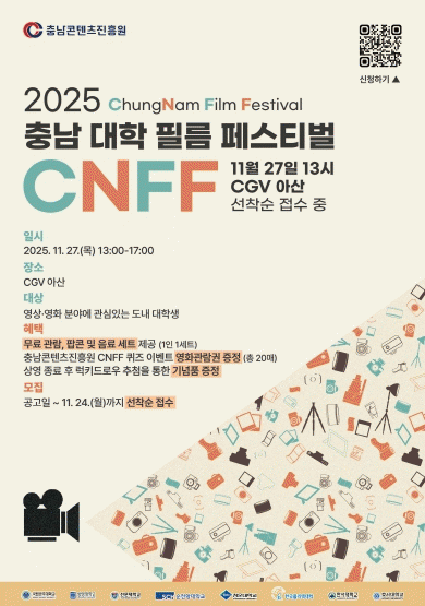 Çà»ç´Â ¿µÈ¿¡ °ü½ÉÀÌ ÀÖ´Â Ãæ³²µµ¹Î°ú µµ³» ´ëÇлýÀ̶ó¸é ´©±¸³ª ¹«·á·Î Âü¿© °¡´ÉÇÏ´Ù. ÇöÀå¿¡´Â Áï¼® Çʸ§Ä«¸Þ¶ó ÃÔ¿µÀÌ °¡´ÉÇÑ Æ÷ÅäÁ¸ÀÌ ¸¶·ÃµÉ ¿¹Á¤À̸ç, SNS ÀÎÁõ À̺¥Æ®, ¿µÈ °ü·Ã ÄûÁî ¹× °æÇ° Ãß÷, ±×¸®°í ½½·¹ÀÌÆ® ۸µ¡¤±Û·¯ºê °¡µå Ŭ¸³ µî ´Ù¾çÇÑ Æ¯º° ±â³äǰÀÌ ¸¶·ÃµÅ °ü¶÷°´µé¿¡°Ô ´Ù¾çÇÑ Áñ±æ °Å¸®¸¦ Á¦°øÇÒ ¿¹Á¤ÀÌ´Ù.
