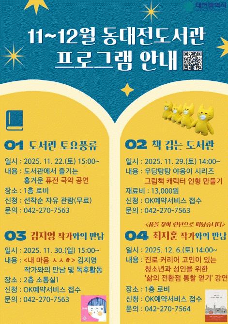 ¸ÕÀú 11¿ù 22ÀÏ 15½Ã¿¡´Â ¸Å¿ù ÁÖ¸» 1ȸ µµ¼°üÀ» ¿À¸ç °¡¸ç Áñ±æ ¼ö ÀÖ´Â ¿À°¡´Ù ÁÖ¸» °ø¿¬ ¡®µµ¼°ü Åä¿ädz·ù¡¯¸¦ ¿î¿µÇÑ´Ù.