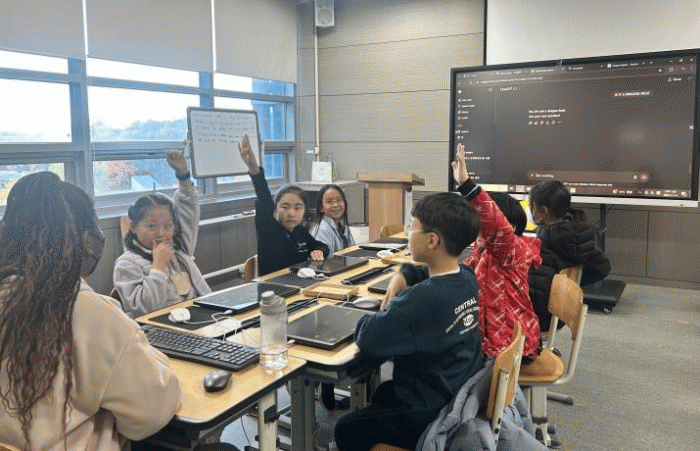 1±³½Ã¿¡´Â êGPT¿Í ÇÔ²²ÇÏ´Â ¡®½º¹«°í°³ °ÔÀÓ¡¯°ú AI ¿µ¾î ´Ü¾î Åׯ®¸®½º °ÔÀÓ ¡®Semantris¡¯·Î ±¸¼ºµÆ´Ù. ½º¹«°í°³ °ÔÀÓ¿¡¼´Â ÇлýµéÀÌ Á¦½ÃµÈ ´Ü¾î¿Í ¿¬°üµÈ ÈùÆ®¸¦ ¹ÙÅÁÀ¸·Î ´Ü¾î¸¦ Ã߸®Çϸç Àû±ØÀûÀ¸·Î Âü¿©Çß°í, ¡®Semantris¡¯¿¡¼´Â Åׯ®¸®½º ÇüÅÂÀÇ °ÔÀÓÀ¸·Î ÇнÀ°ú Àç¹Ì¸¦ µ¿½Ã¿¡ Àâ¾Ò´Ù. ÇлýµéÀº °ÔÀÓÀ» ÅëÇØ ÀÚ¿¬½º·´°Ô ´Ü¾î¸¦ ±â¾ïÇÏ°í ¾îÈÖ·ÂÀ» Ű¿ì´Â ±âȸ¸¦ °¡Á³´Ù.