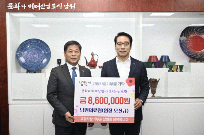 ÃÖ°æ½Ä ³²¿ø½ÃÀåÀº ¡°³²¿øÀÇ·á¿ø Á÷¿ø ¿©·¯ºÐµéÀÇ °íÇâ »ç¶û°ú µû¶æÇÑ ±âºÎ¿¡ ±íÀÌ °¨»çµå¸®¸ç ¼ÒÁßÇÑ ±âºÎ±ÝÀº ³²¿ø½Ã ¹Ì·¡ÁÖ¿ªÀΠû¼Ò³âµéÀÇ À°¼º°ú º¸È£¿¡ »ç¿ëÇÏ¿© Áö¿ª¹ßÀüÀÇ Åä´ë¸¦ Àß ¼¼¿ì°Ú´Ù¡±¸ç °¨»ç Àλ縦 ÀüÇß´Ù.