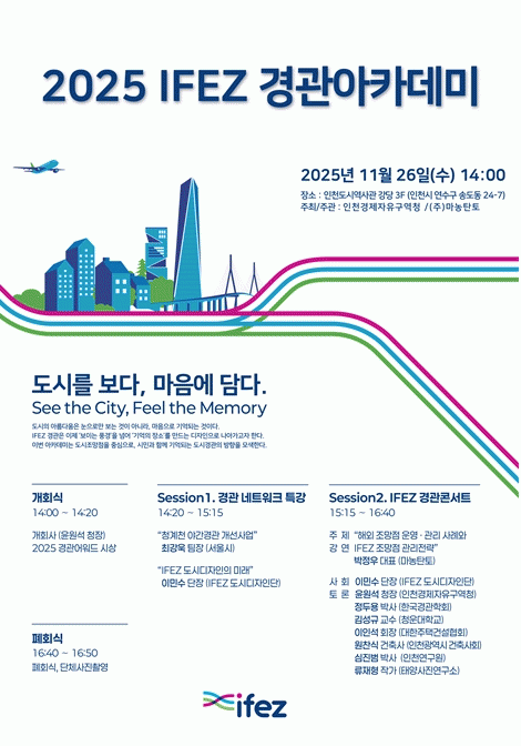 IFEZ °æ°ü¾ÆÄ«µ¥¹Ì´Â IFEZÀÇ µµ½Ã°æ°üÀ» ¸¸µé¾î °¡´Âµ¥ ÀÖ¾î¼ ÁÖ¹Î, Àü¹®°¡ µîÀÇ ¼ÒÅë?°ø°¨ ±â¹ÝÀ» ¸¶·ÃÇϰí Çù·Â °ü°è¸¦ ³ÐÇô°¡±â À§ÇØ Áö³ 2017³âºÎÅÍ ¸Å³â °³ÃÖÇϰí ÀÖ´Ù.
