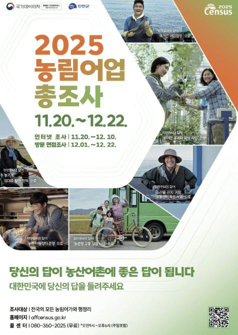 Á¶»ç ´ë»óÀº ÁøÃµ±º ³» ¸ðµç ³ó¸² ¾î°¡¿Í ÇàÁ¤¸®À̸ç, ÀÎÅÍ³Ý Á¶»ç´Â 11¿ù 20ÀϺÎÅÍ Âü¿©¹øÈ£°¡ ±âÀçµÈ ¾È³»¹®À» Âü°íÇØ, ÀÀ´äÀÚ°¡ °£ÆíÇÏ°Ô Âü¿©ÇÒ ¼ö ÀÖ´Ù.