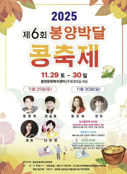 À̹ø ÃàÁ¦´Â ºÀ¾çÀ¾ ³óÃÌÁß½ÉÁöȰ¼ºÈ»ç¾÷ ¸¶À»ÇùÀÇü°¡ ¸¶À» ÁÖ¹ÎÀÇ ÈÇÕ°ú ³ó»ê¹° ÆÇ¸Å Áõ´ë¸¦ À§ÇØ ±âȹÇÑ Çà»ç·Î, °¡¿äTV¸¦ ÃÊÃ»ÇØ ¿©·¯ °¡¼ö°¡ Ã⿬ÇÏ´Â ½Å³ª´Â °ø¿¬µµ ÁغñµÇ¾î ÀÖ¾î ¹æ¹®°´µé¿¡°Ô dz¼ºÇÑ Áñ±æ °Å¸®¸¦ Á¦°øÇÒ °èȹÀÌ´Ù.