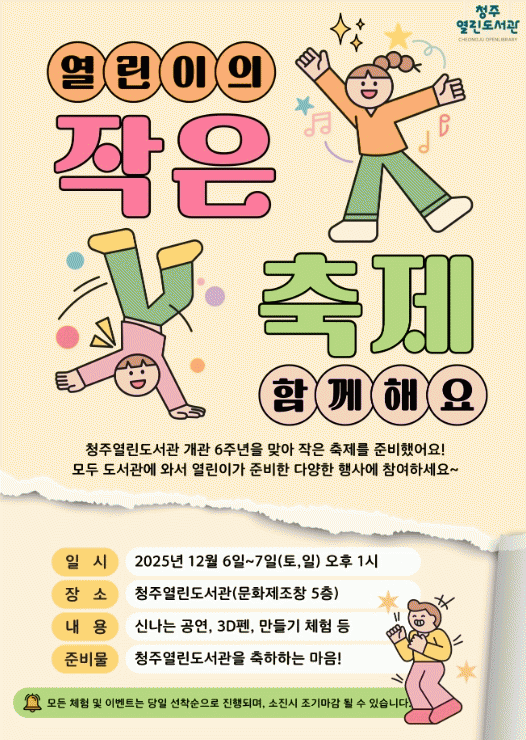 ÀÚ¼¼ÇÑ ÇÁ·Î±×·¥ ³»¿ë°ú ÀÏÁ¤Àº ûÁÖ¿¸°µµ¼°ü °ø½Ä ´©¸®Áý¿¡¼ È®ÀÎÇÒ ¼ö ÀÖÀ¸¸ç, ±âŸ ¹®ÀǴ ûÁÖ¿¸°µµ¼°ü(043-241-0651)À¸·Î ¿¬¶ôÇÏ¸é µÈ´Ù.