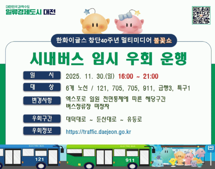 ¿ìȸ ¿îÇàÀº ¿ÀÈÄ 4½ÃºÎÅÍ 9½Ã±îÁö Àû¿ëµÇ¸ç, ´ë»ó ³ë¼±Àº 121¡¤705¡¤707¡¤911¹ø°ú ±ÞÇà3¡¤Æ¯±¸1¹øÀÌ´Ù.