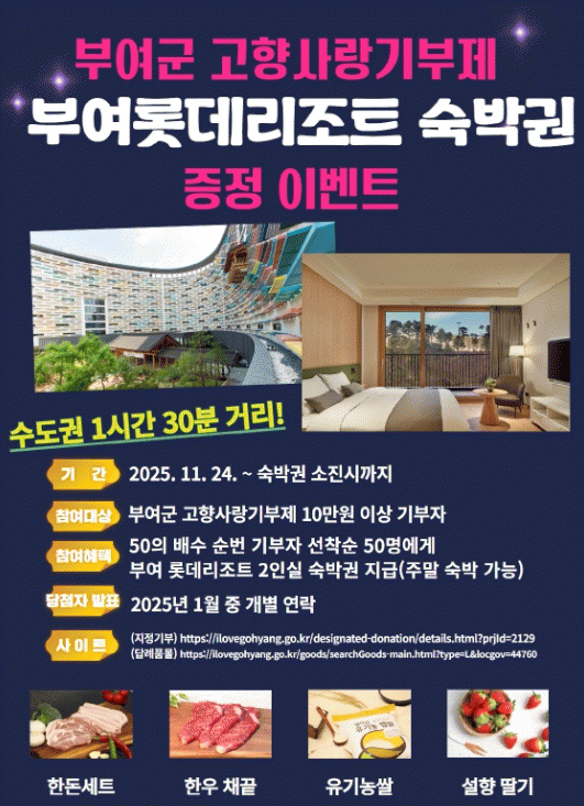 À̹ø À̺¥Æ®´Â 24ÀϺÎÅÍ ¼÷¹Ú±Ç ¼ÒÁø ½Ã±îÁö 50¹è¼öÀÇ ±âºÎÀÚ ÃÑ 50¸í¿¡°Ô ºÎ¿©·Ôµ¥¸®Á¶Æ® 2ÀÎ½Ç ¼÷¹Ú±ÇÀ» Á¦°øÇÏ´Â ¹æ½ÄÀ¸·Î ÁøÇàµÇ¸ç, °íÇâ»ç¶û±âºÎÁ¦¸¦ ÅëÇØ ºÎ¿©±º¿¡ ±âºÎÇϸé ÀÚµ¿À¸·Î À̺¥Æ® ´ë»ó¿¡ Æ÷ÇԵȴÙ.