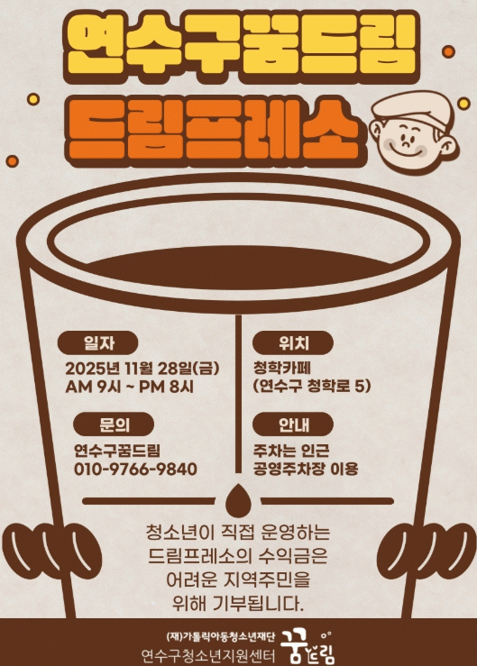 ÀÏÀÏ Ä«Æä ¡®µå¸²ÇÁ·¹¼Ò¡¯´Â ¼¾ÅÍÀÇ Ã¢¾÷Áö¿ø »ç¾÷ÀÇ Çϳª·Î, ¹Ù¸®½ºÅ¸ ¹× Á¦°úÁ¦»§ ÀÚ°ÝÁõÀ» ÃëµæÇÑ Çб³ ¹Û û¼Ò³âµéÀÌ Á÷Á¢ Ä«Æä¸¦ ¿î¿µÇØ º¸¸ç ½ÇÀü °æÇèÀ» ½×´Â ÇÁ·Î±×·¥ÀÌ´Ù.