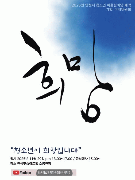 û¼Ò³âÀÇ ±âȹ°ú Âü¿©·Î ¿î¿µµÇ´Â À̹ø Çà»ç´Â °ø¿¬¡¤Ã¼Ç衤¹ÙÀÚȸ°¡ °áÇÕµÈ ÅëÇÕÇü û¼Ò³â ÃàÁ¦·Î, û¼Ò³â °øµ¿Ã¼ÀÇ ¼ºÀå°ú »çȸ Âü¿©¸¦ ½ÇõÇÏ´Â ÀÚ¸®´Ù. ¿ÃÇØ Æó¸·½ÄÀº ¡°Ã»¼Ò³â ÁÖµµÇü ¾î¿ï¸²¸¶´ç¡±À» ¸ñÇ¥·Î ¼³°èµÆ´Ù. ¾È¼º½Ã¿Í °æ±âµµ°¡ ÁÖÃÖÇϰí, (»ç)Çѱ¹Ã»¼Ò³âº¹Áö¹®È¿ø ¾È¼ºÁöºÎ¿Í ¹Ì·¡À§¿øÈ¸°¡ ±âȹ¡¤¿î¿µÀ» ¸Ã¾Ò´Ù.