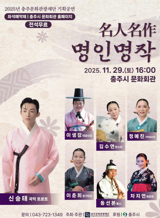 À̹ø °ø¿¬Àº Àü¼® ¹«·á·Î ÁøÇàµÇ¸ç, Á¼® ¿¹¾àÀº ÃæÁֽù®Èȸ°ü ȨÆäÀÌÁö¿¡¼ °¡´ÉÇÏ´Ù.