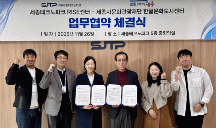 Çѱ۹®Èµµ½Ã¼¾ÅÍ´Â 26ÀÏ ¼¼Á¾Å×Å©³ëÆÄÅ© 5Ãþ ÁßȸÀǽǿ¡¼ ¼¼Á¾RISE¼¾ÅÍ¿Í ¾÷¹«Çù¾àÀ» ü°áÇϰí, Áö¿ª ´ëÇаú Çõ½Å±â°üÀÌ Âü¿©ÇÏ´Â Çù·Â ü°è ±¸ÃàÀ» ÅëÇØ ¡®¼¼°è¸¦ ÀÕ´Â Çѱ۹®Èµµ½Ã ¼¼Á¾¡¯ ½ÇÇö¿¡ °øµ¿ ³ë·ÂÇϱâ·Î Çß´Ù.