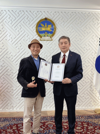 ÈÆÀå Àü´Þ½ÄÀº 11¿ù 21ÀÏ ¼¿ï ÁÖÇѸù°ñ´ë»ç°ü¿¡¼ ¿¸° ÇÑ¡¤¸ù ¼ö±³ 35Áֳ⠱â³äÇà»ç¿¡¼ ÁøÇàµÆÀ¸¸ç, ¿ÀÈ峪 ÈÄ·¼¼öÈå ¸ù°ñ ´ëÅë·ÉÀ» ´ë½ÅÇØ ³È´Ù¿Í ÈÄ·¼¹ÙŸ¸£ ¸ù°ñ ´ëÅë·É½Ç ¼ö¼®°í¹®ÀÌ ¼³ ±³¼ö¿¡°Ô ÈÆÀåÀ» ÀüÇß´Ù.