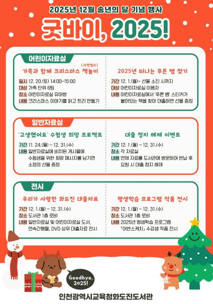 À̹ø Çà»ç´Â ¡ã°¡Á·°ú ÇÔ²² Å©¸®½º¸¶½º Ã¥³îÀÌ ¡ã¼öÇè»ý Èñ¸Á ¸Þ½ÃÁö ³²±â±â ¡ã ¡®2025³â ¶°³ª´Â Ǫ¸¥ ¹ì ã±â¡¯ µî ½Ã¹Î Âü¿© Áß½ÉÀÇ ÇÁ·Î±×·¥À¸·Î ±¸¼ºÇØ µû¶æÇÑ ¿¬¸» ºÐÀ§±â¸¦ Á¶¼ºÇÑ´Ù.