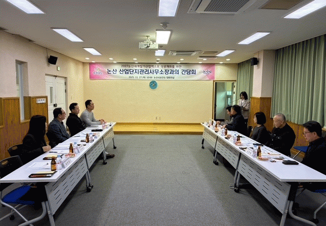 ³í»ê¼¼°èµþ±â»ê¾÷¿¢½ºÆ÷ Á¶Á÷À§¿øÈ¸(ÀÌÇÏ Á¶Á÷À§)´Â 27ÀÏ ³í»ê½Ã º¸°Ç¼Ò ´ëȸÀǽǿ¡¼ ³í»ê Áö¿ª »ê¾÷´ÜÁö°ü¸®»ç¹«¼ÒÀå°ú °£´ãȸ¸¦ °³ÃÖÇß´Ù.