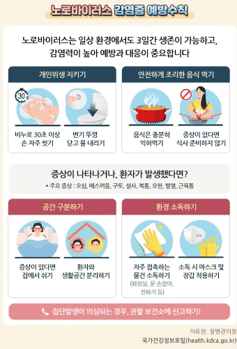 ³ë·Î¹ÙÀÌ·¯½º´Â ±Ø¼Ò·®ÀÇ ¹ÙÀÌ·¯½º·Îµµ °¨¿°ÀÌ °¡´ÉÇÒ Á¤µµ·Î ÀüÆÄ·ÂÀÌ °ÇÑ º´¿øÃ¼·Î, ³·Àº ¿Âµµ¿¡¼ ¾ÈÁ¤ÀûÀ¸·Î Ȱµ¿ÇØ °Ü¿ïö °¨¿° À§ÇèÀÌ Å©°Ô ³ô¾ÆÁø´Ù. ÁÖ·Î ¿À¿°µÈ ¼ÕÀ̳ª Á¶¸®±â±¸, ½ÄÀç·á µîÀ» ÅëÇØ ½±°Ô È®»êµÇ¸ç, °¨¿° ½Ã 1~2ÀÏ ³» ±¸Å䡤º¹Å롤¼³»ç µîÀÇ ±Þ¼º À§Àå°ü¿° Áõ»óÀÌ ³ªÅ¸³´Ù. ´ëºÎºÐ 5ÀÏ À̳» ÀÚ¿¬ ȸº¹µÇÁö¸¸, ȸº¹ ÈÄ¿¡µµ ÀÏÁ¤ ±â°£ ¹ÙÀÌ·¯½º°¡ ¹èÃâµÇ¾î °¡Á¤¡¤Çб³¡¤½ÄǰÁ¦Á¶¾÷ü µî¿¡¼ÀÇ 2Â÷ °¨¿° À§ÇèÀÌ Á¸ÀçÇÑ´Ù.