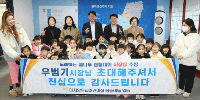 ¿ì¹ü±â ÀüÁÖ½ÃÀåÀº ¡°¾Æµ¿ º¸À°¿¡ ¿Á¤À» °®°í ³ë·ÂÇϽô ¿øÀå´ÔÀÇ ³ë°í¿¡ °¨»çµå¸°´Ù¡±¸é¼ ¡°¾ÕÀ¸·Îµµ µ¥½Ã¾Ó¿ì¸®¾î¸°ÀÌÁýÀÌ µû¶æÇϰí Ȱ±â ³ÑÄ¡´Â ¾î¸°ÀÌÁýÀ¸·Î ´õ¿í ¼ºÀåÇÏ±æ ¹Ù¶õ´Ù¡±°í ¸»Çß´Ù.