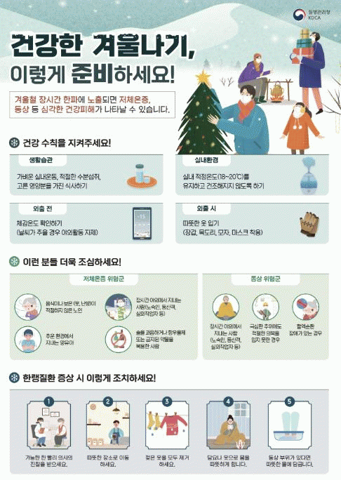 ±ºÀº ü¿Â À¯Áö ´É·ÂÀÌ »ó´ëÀûÀ¸·Î ¶³¾îÁö´Â °íÀ§Ç豺 º¸È£¿¡ ÁßÁ¡À» µÎ°í ½Ç³» ÀûÁ¤ ¿Âµµ À¯Áö(18~20¡É), ¹æÇÑ¿ëǰ Âø¿ë, ¾ß¿Ü Ȱµ¿ ÀÚÁ¦ µî ¿¹¹æ ¼öÄ¢ È«º¸¸¦ °ÈÇÒ °èȹÀÌ´Ù.
