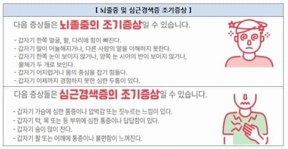 º¸°Ç¼Ò °ü°èÀÚ´Â ¡°½É³úÇ÷°üÁúȯÀ» ¿¹¹æÇÏ·Á¸é Á¤±âÀûÀÎ Ç÷¾Ð ¹× Ç÷´ç üũ¿Í °°Àº °íÇ÷¾Ð ¹× ´ç´¢¿Í °°Àº ±âÀúÁúȯ °ü¸®°¡ Áß¿äÇϸç, ³úÁ¹Áß ¹× ½É±Ù°æ»ö Ãʱâ Áõ»ó »çÀü ¼÷Áö·Î Áõ»óÀÌ ³ªÅ¸³¯ °æ¿ì, Áï½Ã 119¿¡ µµ¿òÀ» ¿äÃ»ÇØ¾ß ÇÑ´Ù¡±°í °Á¶Çß´Ù.