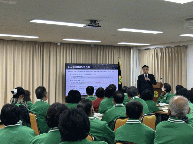 À̳¯ ±³À°¿¡´Â ±è¿µ¹è µµ ÀÚÄ¡°æÂûÀ§¿øÈ¸ »ç¹«±¹ÀåÀÌ °»ç·Î Âü¿©ÇØ ½Ã¹ÎµéÀÌ ÀÚÄ¡°æÂû Á¦µµÀÇ ¿ªÇÒ°ú ±â´ÉÀ» ÀÌÇØÇÒ ¼ö ÀÖµµ·Ï µµÀÔ ¹è°æ°ú ¼º°ú, ÁֹΠÂü¿© ¹æ¾È µîÀ» ¼³¸íÇß´Ù.