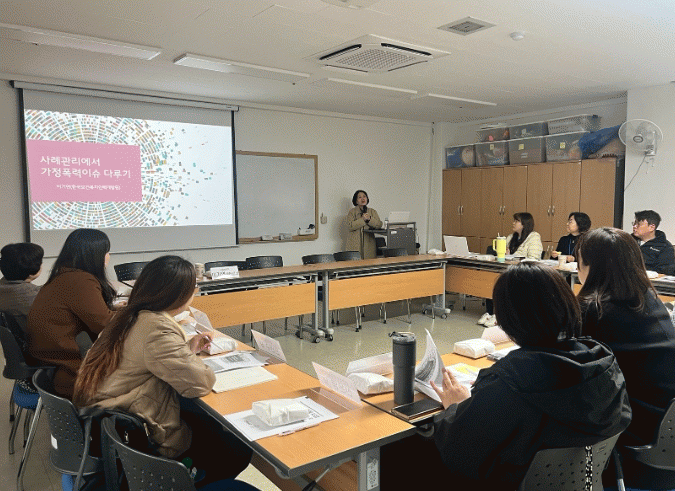 ½ÃÈï½ÃÁ¤½Å°Ç°º¹Áö¼¾ÅÍ À̱⿬ ¼¾ÅÍÀåÀÌ ½´ÆÛ¹ÙÀÌÀú·Î¼ ¡®»ç·Ê°ü¸®¿¡¼ °¡Á¤Æø·Â À̽´ ´Ù·ç±â¡¯¿¡ ´ëÇÑ Àü¹®±³À°°ú ½ÇÁ¦ »ç·Ê ±â¹Ý ½´ÆÛºñÀüÀ» ÁøÇàÇϸç, °¡Á¤Æø·Â À§Çè ½ÅÈ£ ½Äº°, Á¤½Å°Ç° Æò°¡, ±â°£ °ü ¿¬°è Àü·« µî ÇöÀå¿¡¼ ¹Ù·Î Àû¿ë °¡´ÉÇÑ ½Çõ ÁöħÀ» Á¦½ÃÇß´Ù.
