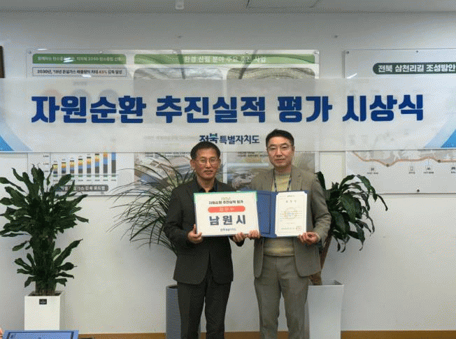 ÀüºÏƯº°ÀÚÄ¡µµ´Â µµ³» 14°³ ½Ã±ºÀ» ´ë»óÀ¸·Î Áö¼Ó °¡´ÉÇÑ ÀÚ¿ø¼øÈ¯ »çȸ ±¸ÃàÀ» À§ÇÑ Á¾ÇÕÆò°¡¸¦ ½Ç½ÃÇßÀ¸¸ç ³²¿ø½Ã´Â ºÐ¸®¹èÃâ ȯ°æ°³¼±, ÀçȰ¿ëǰ ºÐ¸®¼ö°Å·®, À§ÇØ È¯°æ°³¼± ºÐ¾ß µî 8°³ ºÐ¾ß¿¡¼ ¿ì¼öÇÑ ¼º°ú¸¦ °ÅµÎ¸ç ÃÖ¿ì¼ö ±â°üÀ¸·Î ¼±Á¤µÆ´Ù.
