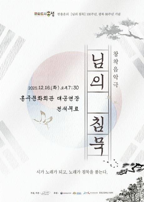 ¡®´ÔÀÇħ¹¬¡¯Àº ¹®Èµµ½Ã È«¼ºÀÇ '2025 ·ÎÄÃÄÜÅÙÃ÷ ¿¹¼úâÀÛÁö¿ø»ç¾÷'¿¡ ¼±Á¤µÈ ÀÛǰÀ¸·Î ÇÑ¿ë¿îÀÇ ´ÔÀÇ Ä§¹¬ 100ÁÖ³âÀ» ±â³äÇØ Á¦ÀÛµÆÀ¸¸ç, ÇÑ¿ë¿î ½ÃÀÎÀÇ »î°ú ½Ã¸¦ ¹ÙÅÁÀ¸·Î âÀÛµÈ À½¾Ç±ØÀÌ´Ù.