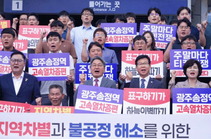 ¾Õ¼ ±¤Áֽô Áö³ 9¿ù23ÀÏ ±¤ÁÖ¼ÛÁ¤¿ª¿¡¼ Áö¿ª Á¤Ä¡±Ç, ½Ã¹Îµé°ú ÇÔ²² ¡®KTX È£³²¼± ÁõÆí Ã˱¸ °áÀÇ´ëȸ¡¯¸¦ °³ÃÖ, È£³²¼± ¿îÇà ºÒ°øÁ¤ ÇØ¼Ò¿Í ÁõÆí Çʿ伺À» Á¦±âÇß´Ù.