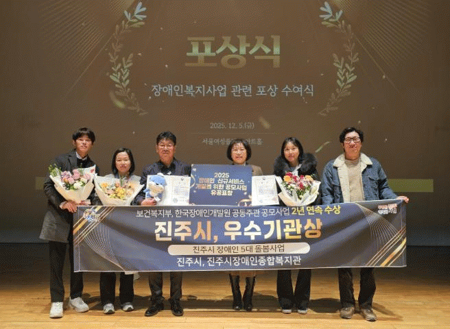 ÁøÁֽô º¸°Çº¹ÁöºÎ¿Í Çѱ¹Àå¾ÖÀΰ³¹ß¿øÀÌ °øµ¿À¸·Î ÁÖ°üÇÑ ¡®2025³â Àå¾ÖÀÎ ½Å±Ô¼ºñ½º °³¹ßÀ» À§ÇÑ °ø¸ð»ç¾÷¡¯ Æò°¡¿¡¼ ¡®ÁøÁֽà Àå¾ÖÀÎ 5´ë µ¹º½»ç¾÷¡¯ÀÌ ¡®¿ì¼ö»ó¡¯À» Â÷ÁöÇØ 2³â ¿¬¼Ó ¼ö»óÀÇ ¿µ¿¹¸¦ ¾È¾Ò´Ù°í ¹àÇû´Ù.