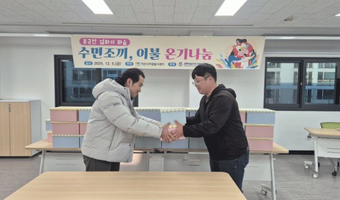 ÀÚ¿øºÀ»çÀÚ 180¿© ¸íÀº Àç´ÜºÎÅÍ ¹Ù´ÀÁú, ¸¶°¨±îÁö Á¦ÀÛ Àü °úÁ¤¿¡ Âü¿©ÇØ ¼ö¸éÁ¶³¢¿Í À̺ÒÀ» Á¤¼º²¯ ÁغñÇß´Ù. ¹°Ç°Àº À¾¸éµ¿ ÇàÁ¤º¹Áö¼¾Å͸¦ ÅëÇØ ¡âÇѺθð ¡â¹ÌÈ¥¸ð ¡âÁ¶ºÎ¸ð ¡â´Ù¹®È°¡Á¤ ¿µÀ¯¾Æ 60¸í¿¡°Ô Àü´ÞµÉ ¿¹Á¤ÀÌ´Ù.
