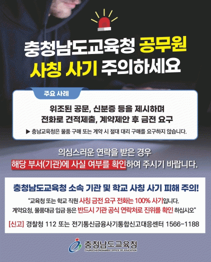 Àǽɽº·¯¿î Àüȳª ¿¬¶ôÀ» ¹ÞÀ» °æ¿ì, Áï½Ã ÇØ´ç ±³À°Ã»/Çб³ÀÇ ´ëÇ¥ Àüȸ¦ ÅëÇØ ½ÇÁ¦ ´ã´ç ºÎ¼¿Í Á÷¿ø ¿©ºÎ¸¦ È®ÀÎÇØ¾ß ÇÑ´Ù. (°³ÀÎ ÈÞ´ëÀüÈ ¹øÈ£°¡ ¾Æ´Ñ °ø½Ä ¿¬¶ôó·Î È®ÀÎ)