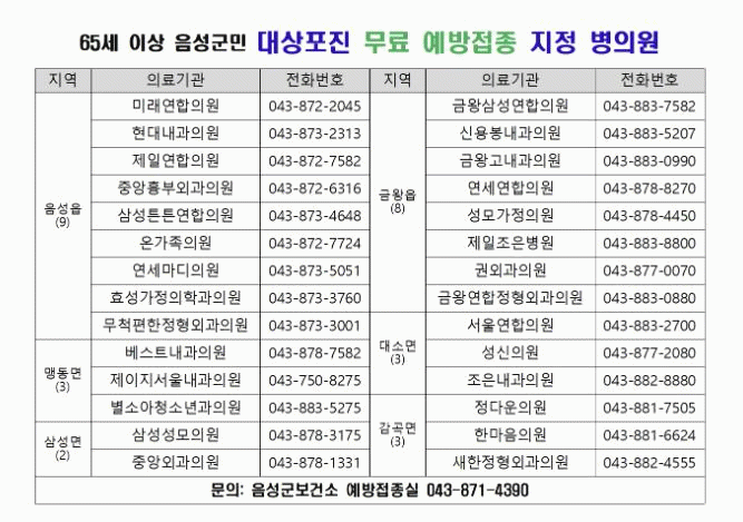 ¾ÆÁ÷ ´ë»óÆ÷Áø Á¢Á¾À» ÇÏÁö ¾ÊÀº 65¼¼ ÀÌ»ó ±º¹ÎÀº ½ÅºÐÁõÀ» ÁöÂüÇØ °¡±î¿î ÁöÁ¤ º´ÀÇ¿øÀ» ¹æ¹®ÇÏ¸é µÈ´Ù. 2026³âÀº 65¼¼°¡ µÇ´Â 1961³â»ýµµ ¹«·á Á¢Á¾ ´ë»óÀÌ´Ù.