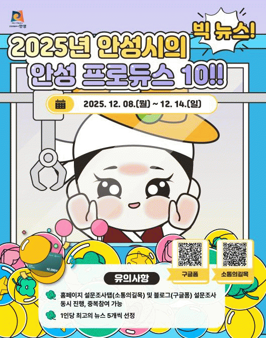 ÅõÇ¥´Â ½Ãû ȨÆäÀÌÁö ³» ¡®¼ÒÅëÀÇ ±æ¸ñ¡¯°ú ¡®¾È¼º½Ã ºí·Î±×¡¯¸¦ ÅëÇØ ´©±¸³ª Âü¿©ÇÒ ¼ö ÀÖÀ¸¸ç 16°³ ´º½º °¡¿îµ¥ 1Àδç 5°³ÀÇ ´º½º¸¦ ¼±ÅÃÇÏ´Â ¹æ½ÄÀ¸·Î ÁøÇàµÈ´Ù.