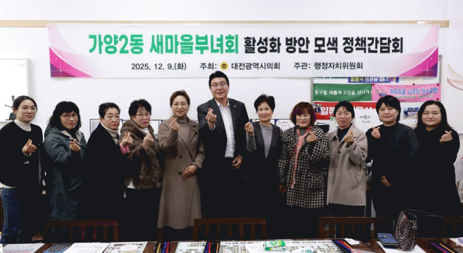 ÇàÁ¤ÀÚÄ¡À§¿øÈ¸ Á¤¸í±¹ ÀÇ¿ø(µ¿±¸3, ±¹¹ÎÀÇÈû)ÀÌ ÁÂÀåÀ» ¸ÃÀº À̹ø Á¤Ã¥°£´ãȸ´Â °¡¾ç2µ¿ »õ¸¶À»ºÎ³àȸ ¹Ú¹Ì¿¹ ȸÀåÀ» ºñ·ÔÇÑ ¼Ò¼Ó ȸ¿øµé°ú ´ëÀü±¤¿ª½Ã ÃÖ¿µ¼÷ ºÐ±ÇÇù·ÂÆÀÀåÀÌ Åä·ÐÀÚ·Î Âü¿©ÇÏ¿© »õ¸¶À»¿îµ¿ÀÇ ¿ª»çÀû Àǹ̸¦ µÇ»õ±â°í »õ¸¶À»ºÎ³àȸ¸¦ ´õ¿í Ȱ¼ºÈ ÇÒ ¹æ¾ÈÀ¸·Î ÇÊ¿äÇÑ ¿¹»êÁö¿ø°ú Á¤Ã¥Àû ¹æ¾È µîÀ» ³íÀÇÇØ ¸¹Àº °ü½ÉÀ» ¸ð¾Ò´Ù.