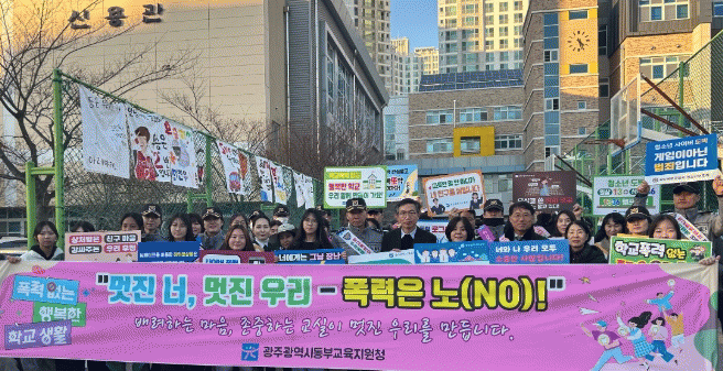 ±¤ÁÖµ¿ºÎ±³À°Áö¿øÃ» À̸í¼÷ ±³À°ÀåÀº ¡°Çб³Æø·Â ¾ø´Â ¾ÈÀüÇÑ ±³À°È¯°æÀ» ¸¸µé±â À§Çؼ´Â Çб³ ±¸¼º¿ø ¸ðµÎÀÇ °ü½É°ú Âü¿©°¡ ÇÊ¿äÇÏ´Ù¡±¸ç ¡°±â°ü¿¡¼´Â Çлý, ±³Á÷¿ø, Çкθ𰡠ÇÔ²² ¿¹¹æ ¹®È¸¦ È®»êÇØ ³ª°¥ ¼ö ÀÖµµ·Ï ÇÊ¿äÇÑ Áö¿ø°ú ³ë·ÂÀ» Áö¼ÓÇØ ³ª°¡°Ú´Ù¡±°í ¸»Çß´Ù.