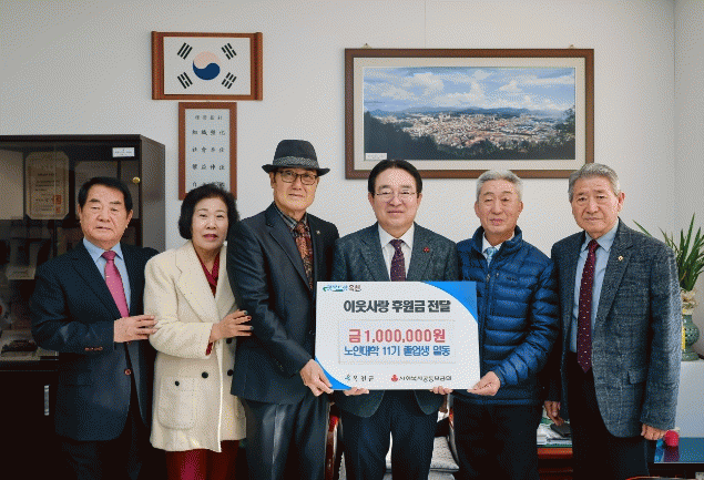 ÇÑÆí, ´ëÇѳëÀÎȸ ¿Áõ±ºÁöȸ ºÎ¼³ ³ëÀδëÇÐ 11±â Á¹¾÷»ýµéÀº À̳¯ 100¸¸ ¿øÀ» ¸ð¾Æ °ü³» Àú¼Òµæ ³ëÀΰèÃþ¿¡ ±âŹÇÏ¸ç ¡°¿ì¸®¿Í °°Àº ³ëÀο¡°Ô Á÷Á¢ µµ¿òÀÌ µÆÀ¸¸é ÇÑ´Ù¡±´Â ¶æÀ» ÀüÇß´Ù.