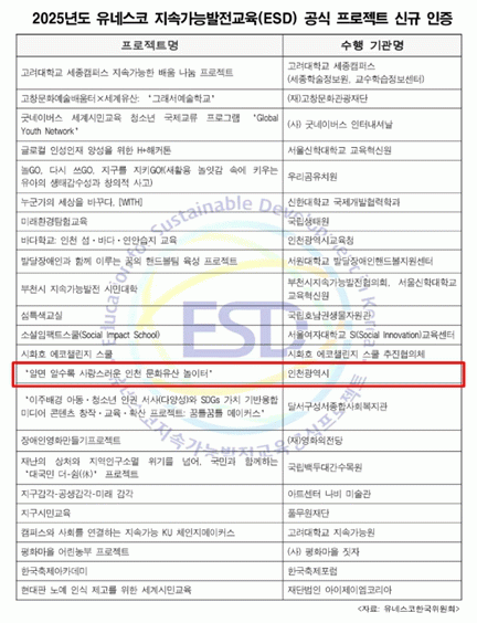 À̹ø ÀÎÁõ °á°ú Àü±¹¿¡¼ ÃÑ 23°³ ÇÁ·ÎÁ§Æ®°¡ °ø½Ä ÀÎÁõµÆÀ¸¸ç, ¡®ÀÎõ ¹®ÈÀ¯»ê ³îÀÌÅÍ¡¯°¡ ±× Áß Çϳª·Î ¼±Á¤µÇ¸ç ÇÁ·Î±×·¥ÀÇ ±³À°Àû¡¤»çȸÀû °¡Ä¡¸¦ ÀÎÁ¤¹Þ¾Ò´Ù.