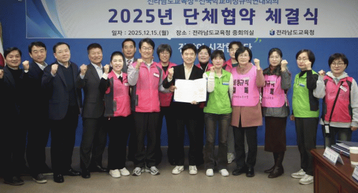 À̳¯ Àü³²±³À°Ã»¿¡¼ ¿¸° ü°á½Ä¿¡´Â ±è´ëÁß Àü³²±³À°°¨°ú ¿¬´ëȸÀÇ(Âü¿©³ëÁ¶: Àü±¹Çб³ºñÁ¤±ÔÁ÷³ëµ¿Á¶ÇÕ, °ø°ø¿î¼ö³ëµ¿Á¶ÇÕ Àü±¹±³À°°ø¹«Á÷º»ºÎ, Àü±¹¿©¼º³ëµ¿Á¶ÇÕ) °¢ ³ëÁ¶ ´ëÇ¥ÀÚ¸¦ Æ÷ÇÔÇÑ ¾çÃø °ü°èÀÚ 30¿© ¸íÀÌ Âü¼®ÇØ Çù¾à¼¿¡ ¼¸íÇÏ¸ç »óÈ£ ¹ßÀüÀ» ¾à¼ÓÇß´Ù.