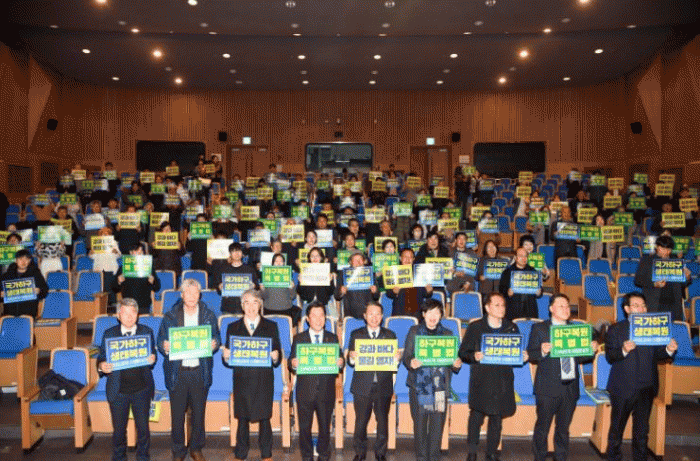 Àü±¹È¸ÀÇ »óÀÓÀÇÀåÀÎ ¹ÚÁ¤Çö ºÎ¿©±º¼ö´Â ±âÁ¶¿¬¼³À» ÅëÇØ ¡°È帣Áö ¸øÇÏ´Â ° Çϱ¸´Â Åä»ç ÅðÀûÀ¸·Î Ç×±¸ ±â´ÉÀ» »ó½ÇÇϰí, ÇϱµÏÀº ¸Þź°¡½º ÀúÀå â°í·Î Àü¶ôÇØ ¡®È¯°æÀ糡¯ÀÌÀÚ ¡®±¹°¡À糡¯ÀÌ µÇ°í ÀÖ´Ù.¡±¶ó°í ÁöÀûÇß´Ù. ÀÌ¾î ¡°±¹°¡Çϱ¸ »ýź¹¿øÀº »ýŰè ȸº¹À» ³Ñ¾î, ±âÈÄ À§±â¿Í Áö¿ª ¼Ò¸ê¿¡ ´ëÀÀÇÏ´Â ´ëÇѹα¹ÀÇ »çȸÀû ¾ÈÀü¸ÁÀÌ µÉ °Í¡±À̶ó¸ç ±¹Á¤°úÁ¦ÀÇ Â÷Áú ¾ø´Â ÀÌÇàÀ» °Á¶Çß´Ù.