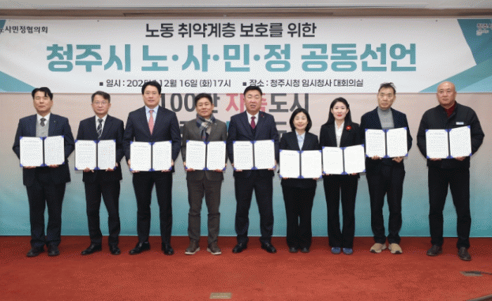 ƯÈ÷ Ç÷§Æû¡¤Æ¯¼ö°í¿ë¡¤ÆÄ°ß ³ëµ¿ÀÚ µî ³ëµ¿ Ãë¾à°èÃþÀÇ ±ÇÀÍ º¸È£¿Í ¾ÈÀüÇÑ ³ëµ¿È¯°æ Á¶¼ºÀ» À§ÇØ ³ë»ç¹ÎÁ¤ÀÌ °øµ¿ÀÇ Ã¥ÀÓ ¾Æ·¡ Çù·ÂÇØ ³ª°¥ °ÍÀ» ´ÙÁüÇÏ´Â ¡®³ëµ¿ Ãë¾à°èÃþ º¸È£¸¦ À§ÇÑ °øµ¿¼±¾ð¹®¡¯À» äÅÃÇϸç, Á¤Ã¥ ½ÇÇà¿¡ ´ëÇÑ ÀÇÁö¸¦ °ø½ÄÈÇß´Ù.