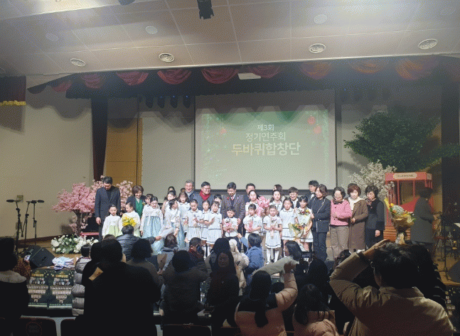 Àå¾ÖÀΰú ºñÀå¾ÖÀÎ ÇлýµéÀ» ºñ·ÔÇÏ¿© ¿ì¸® »çȸ °¢°è°¢ÃþÀÇ ¾î¸°ÀÌ¡¤Ã»¼Ò³âµéÀÌ ÇÔ²² ¾î¿ì·¯Áö´Â, ¾Æ¸§´Ù¿î ¹«´ë¸¦ ¸¸µé¾î³½ µÎ¹ÙÄûÇÕâ´ÜÀÇ À̹ø ¿¬ÁÖȸ´Â, 1³â ³»³» ¶¡ Èê·Á ¿¬½ÀÇÑ ´Ü¿øµéÀÇ ÀÇ¹Ì ÀÖ´Â °ø¿¬°ú ´õºÒ¾î Å×³Ê ÀÌ¿ì½Ä°ú ¹Ú¿¹Áø ´ÜÀåÀÇ Æ¯º°°ø¿¬ÀÌ ÇÔ²²ÇÏ¿© °í¼ºÀÇ Ãß¿î °Ü¿ï¹ãÀ» µû¶æÇÏ°Ô ¸¸µé¾ú´Ù.
