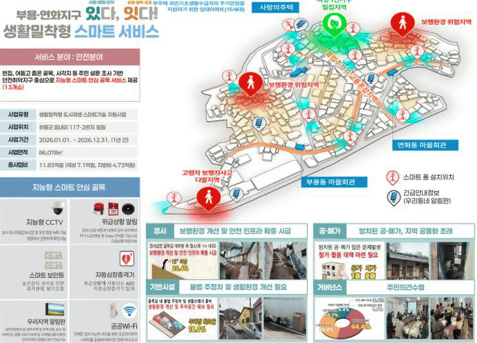Çϵ¿±ºÀº »ç¾÷ ´ë»óÁö¿¡ ¡ã½º¸¶Æ® °Ô½Ã´ë ¡ãAI CCTV ¡ãÈÀç ¿¹¹æ ½Ã½ºÅÛ ¡ãº¸¾Èµî µî ´Ù¾çÇÑ ½º¸¶Æ® ±â¼úÀ» ¼³Ä¡¡¤±¸ÃàÇØ ÁÖ¹ÎÀÌ Ã¼°¨ÇÒ ¼ö ÀÖ´Â ¾ÈÀü¡¤ÆíÀÇ ÀÎÇÁ¶ó¸¦ È®ÃæÇÒ ¿¹Á¤ÀÌ´Ù.