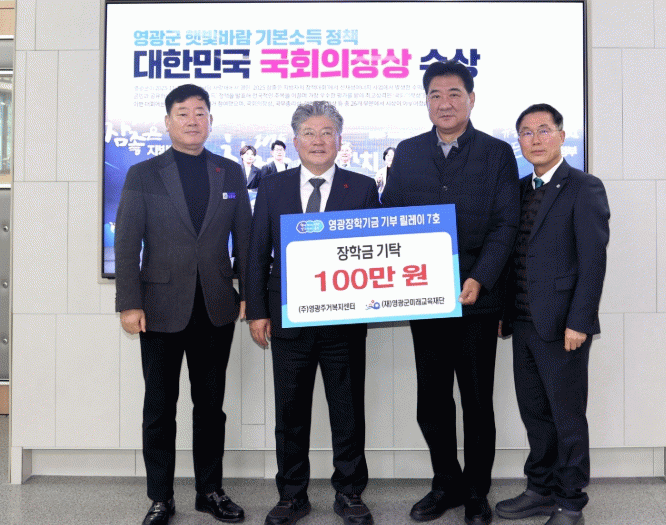 ÀÌ¾î ¢ß¿µ±¤Áְź¹Áö¼¾ÅÍ(´ëÇ¥ ±è±Ù¼ö)´Â ¿µ±¤ÀåÇбâ±Ý ±âºÎ ¸±·¹ÀÌ 7È£·Î ÀåÇÐ±Ý 100¸¸ ¿øÀ» ±âŹÇß´Ù.