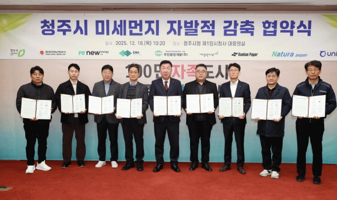 À̹ü¼® ûÁÖ½ÃÀåÀº ¡°¹Ì¼¼¸ÕÁö °¨ÃàÀ» À§ÇÑ Ã»ÁÖ½ÃÀÇ ³ë·Â¿¡ Áö¿ª ±â¾÷µéÀÌ ÀÚ¹ßÀûÀ¸·Î µ¿ÂüÇØ Áּż °¨»çµå¸°´Ù¡±¸ç ¡°À̹ø Çù¾àÀ» °è±â·Î ½Ã¹ÎµéÀÌ Ã¼°¨ÇÒ ¼ö ÀÖ´Â ¸¼°í ±ú²ýÇÑ ´ë±âȯ°æÀ» Á¶¼ºÇÒ ¼ö ÀÖµµ·Ï ½Ã¿Í ±â¾÷ÀÌ ÇÔ²² Áö¼ÓÀûÀ¸·Î Çù·ÂÇØ ³ª°¡°Ú´Ù¡±°í ¸»Çß´Ù.