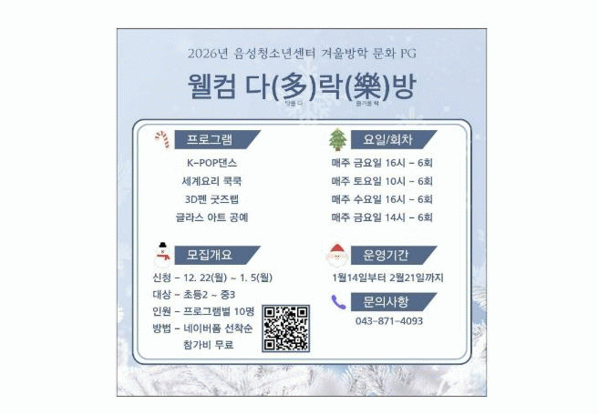 ±º¿¡ °ÅÁÖÇϰí Àִ û¼Ò³âÀÌ¸é ´©±¸³ª ½ÅûÇÒ ¼ö ÀÖÀ¸¸ç Æ÷½ºÅÍ¿¡ ÀÖ´Â ÇÁ·Î±×·¥ ¿î¿µ ¿äÀϰú ½Ã°£À» Âü°í, QRÄڵ带 ÅëÇØ ½ÅûÇÏ¸é µÈ´Ù.