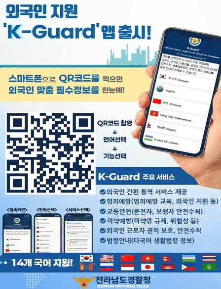 Àü³²°æÂûûÀº¡ºK-Guard¡»¸¦ ´Ü¼øÇÑ Á¤º¸Á¦°ø¿¡ ±×Ä¡Áö ¾Ê°í, ¿Ü±¹ÀÎ °í¿ë¾÷ü¸¦ ´ë»óÀ¸·Î ±³À°ÀÚ·á·Î Ȱ¿ëÅä·Ï ¹èÆ÷ÇÏ°í ¿Ü±¹ÀÎ ¹üÁË¿¹¹æ ±³½Ç µî Æø³Ð°Ô Ȱ¿ëÇÒ ¹æÄ§À̸ç, ¹üÁË ÇÇÇØÀÚ Áö¿øÁ¦µµ µî ½Å±Ô Á¤º¸¸¦ Áö¼ÓÀûÀ¸·Î Ãß°¡ÇÒ ¿¹Á¤ÀÌ´Ù.