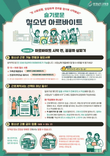 ÁÖ¿ä ³»¿ëÀº ¡ã û¼Ò³â ±Ù·Î °¡´É ¿¬·É°ú Çʿ伷ù ¡ã ±Ù·Î°è¾à¼ ÀÛ¼º ¡ã û¼Ò³â °í¿ë ±ÝÁö ¾÷Á¾ µîÀ» ¾È³»Çϰí, ÀÏÇϴ û¼Ò³âÀÇ ±Ç¸®¸¦ Áö۱â À§ÇØ ¡ã ÃÖÀúÀÓ±Ý ¡ã ÀÏÇÏ´Â ½Ã°£°ú ½¬´Â ½Ã°£ ¡ã »êÀç¿Í ¼ºÈñ·Õ ¿¹¹æÀ» À§ÇÑ ÀÚ·á·Î ±¸¼ºµÆ´Ù.
