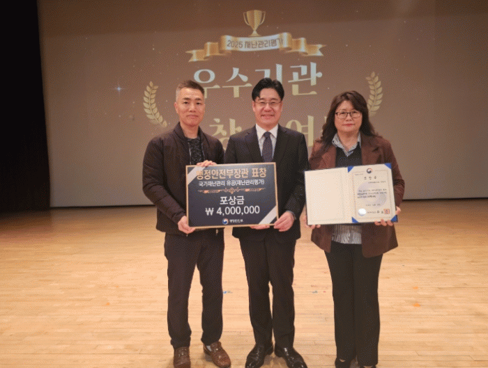 ÀÍ»ê½Ã´Â 22ÀÏ ÇàÁ¤¾ÈÀüºÎ ÁÖ°ü '2025³âµµ ÁöÀÚü Àç³°ü¸®Æò°¡'¿¡¼ ¿ì¼ö±â°üÀ¸·Î ¼±Á¤µÅ ÇàÁ¤¾ÈÀüºÎ Àå°ü ±â°ü ǥâÀ» ¹Þ¾Ò´Ù.