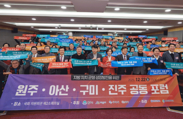 ¿À¼¼Çö ¾Æ»ê½ÃÀåÀº 22ÀÏ ±¹È¸ÀÇ¿øÈ¸°ü Á¦2¼ÒȸÀǽǿ¡¼ ¿¸° ¡®Áö¹æÀÚÄ¡ ±ÕÇü¼ºÀå ¹ßÀüÀ» À§ÇÑ ¿øÁÖ¡¤¾Æ»ê¡¤±¸¹Ì¡¤ÁøÁÖ °øµ¿Æ÷·³¡¯¿¡ Âü¼®Çß´Ù. À̳¯ Æ÷·³¿¡¼´Â 4°³ µµ½Ã°¡ ÇÔ²² ´ëµµ½Ã Ư·Ê ±âÁØ ¿ÏÈ¿Í °ü·ÃÇÑ °øµ¿°ÇÀǹ®¿¡ ¼¸íÇϰí, °ü·Ã ¹ý·É °³Á¤À» Á¤ºÎ¿Í ±¹È¸¿¡ °ø½Ä °ÇÀÇÇß´Ù.