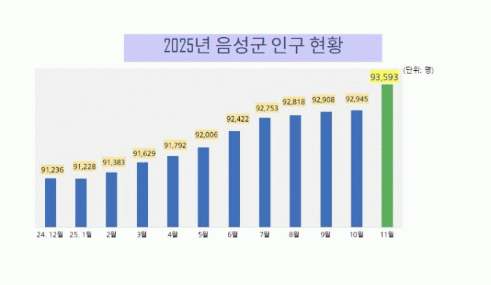 ±º¿¡ µû¸£¸é, Áö³ 11¿ù 30ÀÏ ±âÁØ ±º Àα¸´Â 9¸¸ 3593¸íÀ¸·Î, Àü³â ´ëºñ 2357¸íÀÌ Áõ°¡Çß´Ù. ÀÌ´Â Àα¸ Áõ°¡À² 2.58%·Î, ÃæÃ»ºÏµµ 11°³ ½Ã¡¤±º °¡¿îµ¥ 1À§¿¡ ÇØ´çÇÏ´Â ±â·ÏÀÌ´Ù.